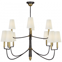 Farlane Large Chandelier in Bronze with Hand-Rubbed Antique Brass and Natural Paper Shades