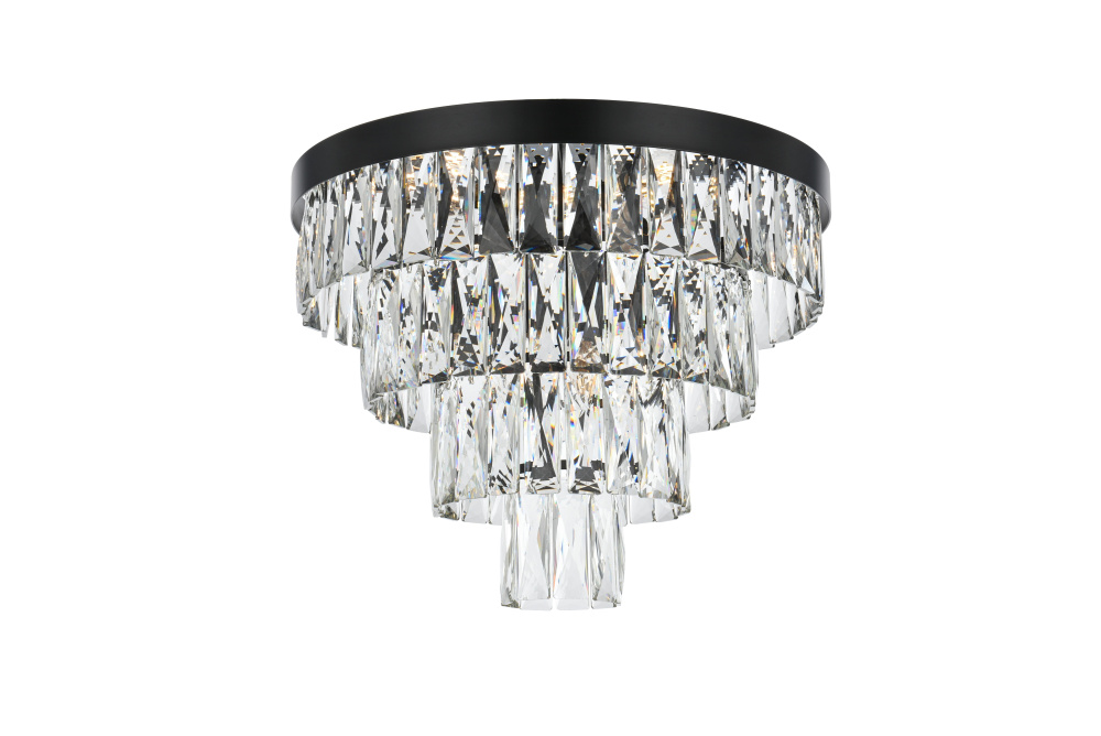Transform your space with this extraordinary flush mount that reimagines classical crystal design for contemporary interiors. The masterfully engineered silhouette features four graduating tiers that create a spectacular inverted pyramid, reminiscent of a frozen cascade captured in mid-descent. Each precisely cut rectangular crystal is strategically positioned to maximize light play, creating mesmerizing displays of fractured light throughout your space. The substantial scale makes this fixture an ideal centerpiece for bedrooms, closets, hallways, sophisticated dining rooms, or executive offices. The thoughtful construction incorporates six light sources distributed throughout the tiers, ensuring both spectacular illumination and enchanting crystal animation. The robust iron framework provides a secure foundation while maintaining visual lightness, allowing the crystals to appear as if floating in space. Available in reflective chrome, sophisticated black, or warm satin gold, this flush mount makes an unforgettable statement while maintaining refined restraint. The cascading arrangement creates a sense of movement and flow, while the geometric precision of each crystal adds contemporary edge to the classical form. This is more than a light fixture – it's an architectural feature that transforms your space through its commanding presence and spectacular light performanc
