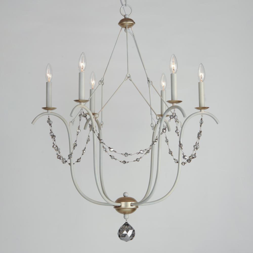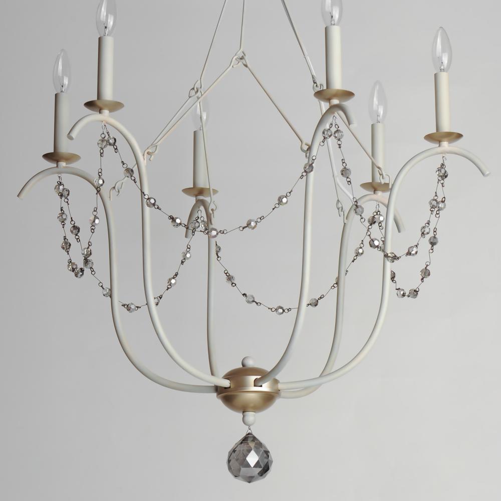 This series draws inspiration from regal agrarian manors, delivering a statement in its scale and sophisticated finishes. Designed in operatic proportions, the bottom chandelier assembly features swollen curves hand painted in a choice of Ecru White or Gol