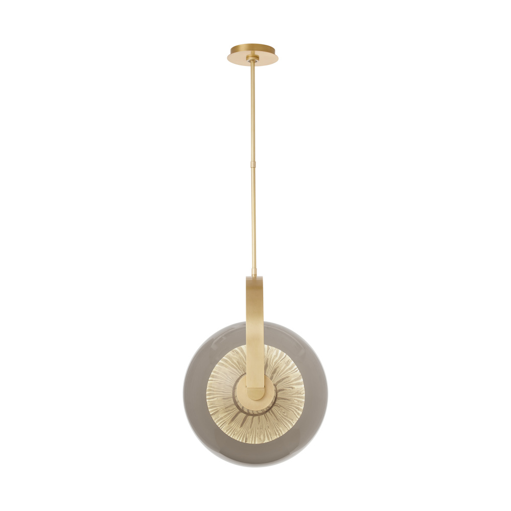 The Fues Large Pendant by Sean Lavin embodies polished form, a restrained aesthetic, and hand-blown glass from Italy. A wishbone technique suspends the center globe shade, while the inner fluted glass diffuser gives the appearance of an oversized filament lamp running through the fixture. Fues incorporates dimmable LEDs to create a desired ambiance. Pendant lighting is a solution installed individually or in multiples. Ideal for kitchen island task lighting, bedroom lighting, or home office lighting, as well as countless commercial application spaces.