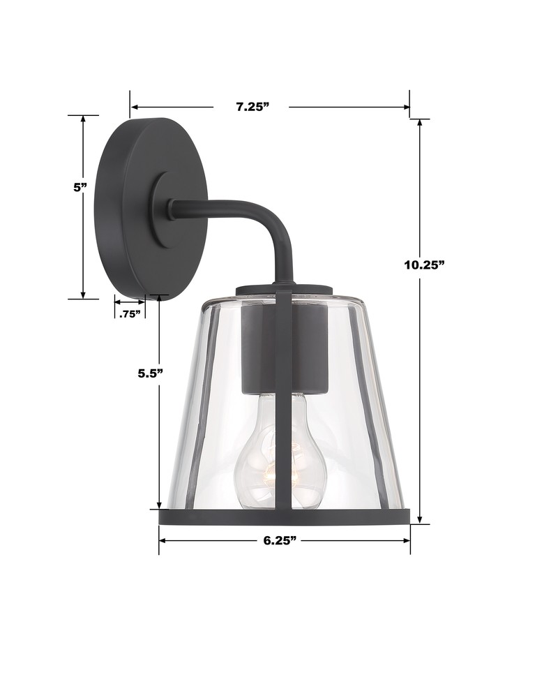 The tailored and versatile Fulton wall sconce has contrasting materials to create an eye-catching display. This fixture features a tapered glass shade that casts illumination downwards, providing bright illumination to your modern bathroom. The white or clear glass is wrapped in a metal ring with tailored lines creating an elegant contrast. Finishes include Polished Nickel, Antique Gold, and Matte Black.