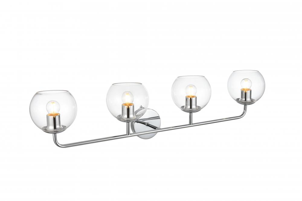 A modern twist on a traditional design, this vanity light is perfect for sprucing up your bathroom. Rated for use in damp locations, this iron fixture features a round backplate, curved arms, and orb accents. Completely versatile, you can place this wall light as an uplight or downlight. Rated for use in damp locations, this will work perfectly over a vanity in your bathroom.