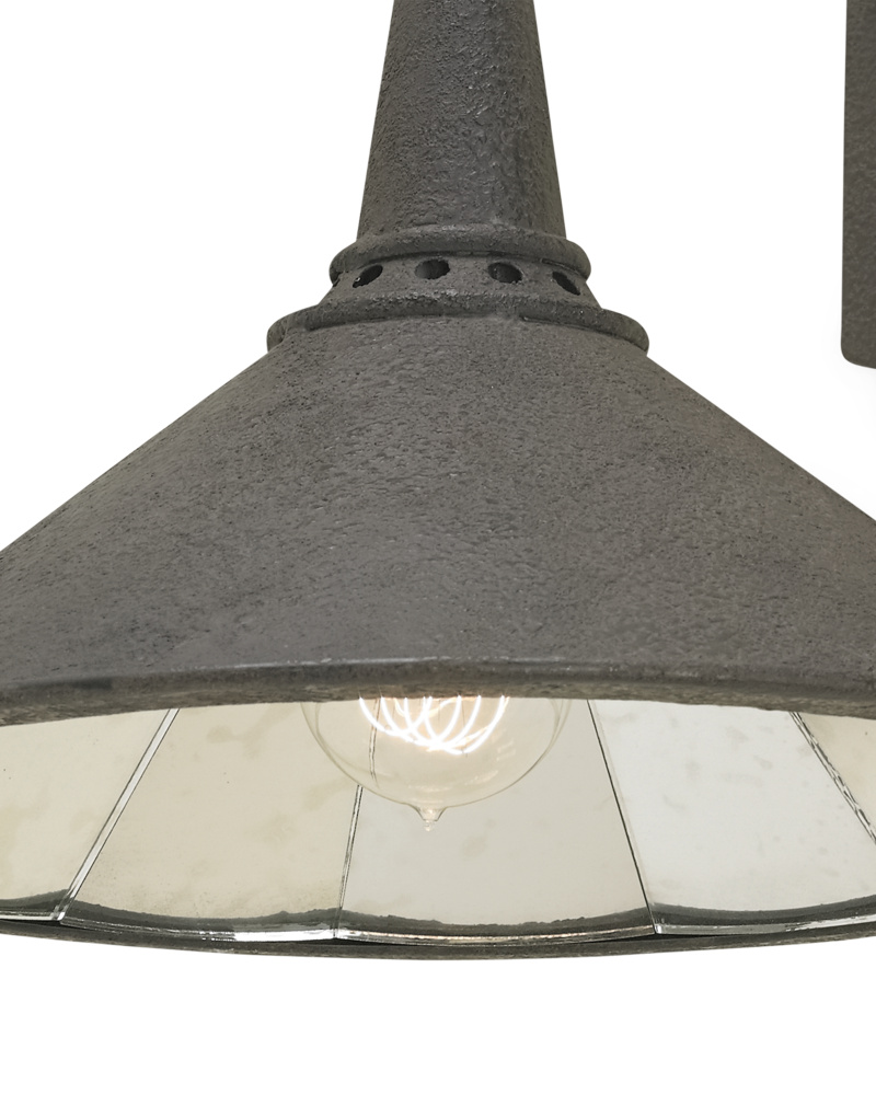 Mysterious in its opacity, the frosted glass shade of the Glacier Silver Wall Sconce releases its illumination softly. Adding to its subdued appeal is the simplicity of its lines and the silver leaf finish on its wrought iron frame. This glass wall sconce is certified for damp locations.