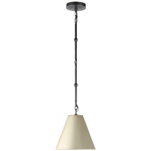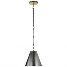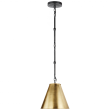 Goodman Petite Hanging Shade in Hand-Rubbed Antique Brass with Linen Shade