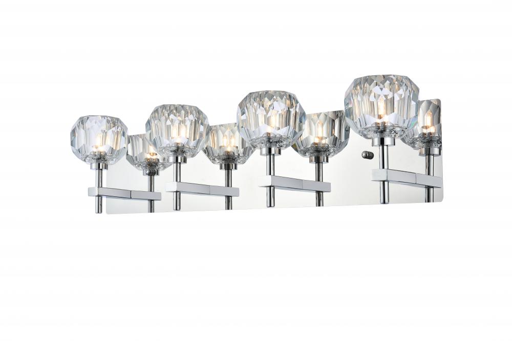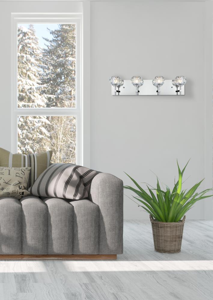 Crafted from iron metal and crystal, it features a rectangular backplate and arms extended with solid K9 crystal ball for a modern and linear look. Each 20W G9 bulb ( not included) is diffused by a faceted clear crystal ball giving the fixture a touch of industrial and glam inspiration. This work of art will add an artful focal point to your entryway, dining room, kitchen, or office. Evoking a sophisticated and timeless aesthetic to any space and will be an instant conversation started with its finely faceted crystal sphere which is polished by hand to reflect and refract light. Available in three different finishes in gold, chrome, and black.
