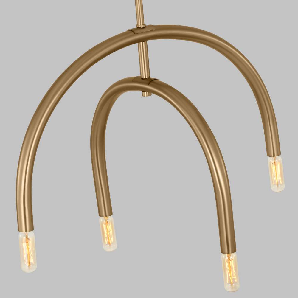 Add a modern statement with this unique chandelier. Hadden's mobile-like form allows you to adjust the arcing arms for an arrangement of your design. Playfully proportioned center hub and two finish options give this series plenty of elegant contrast.