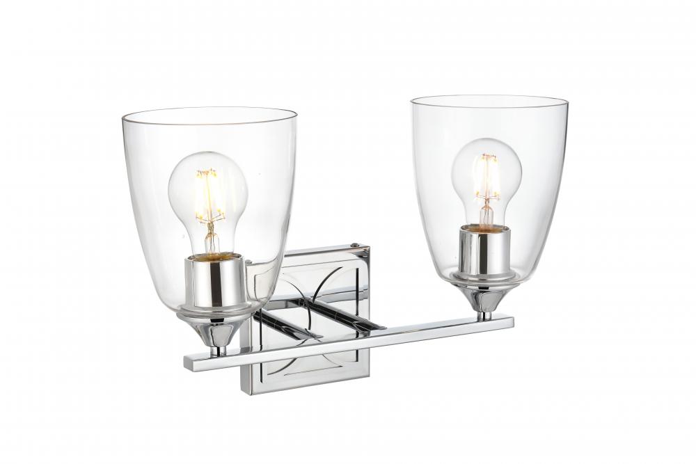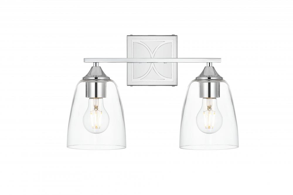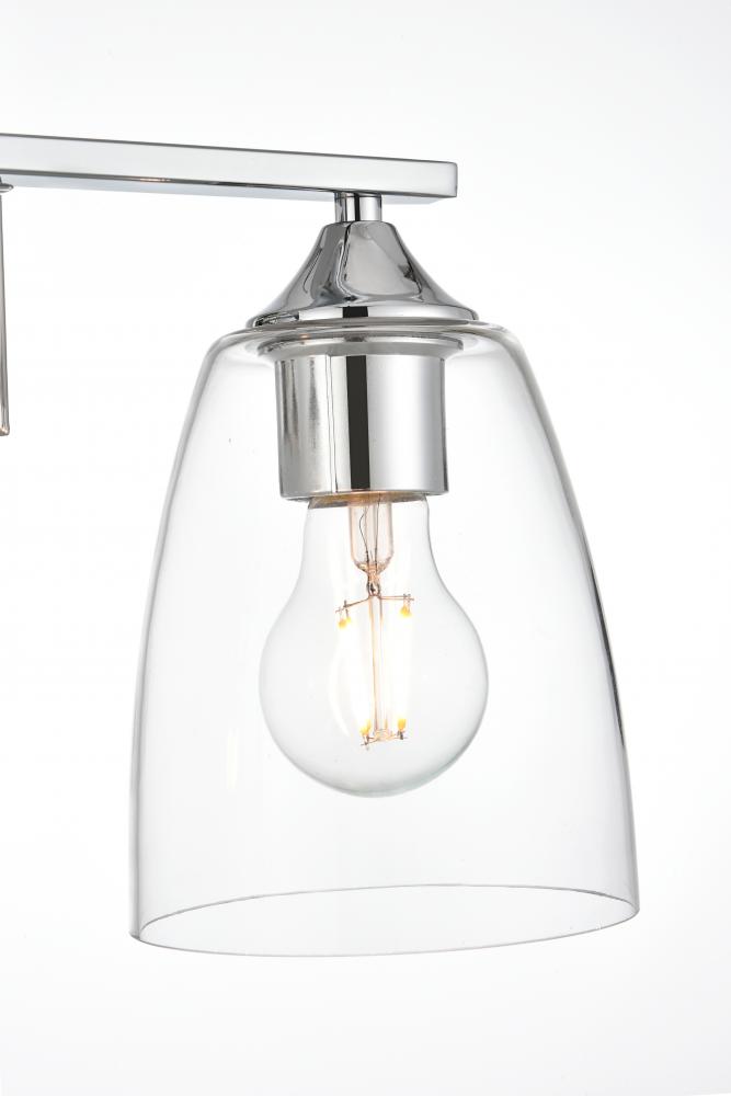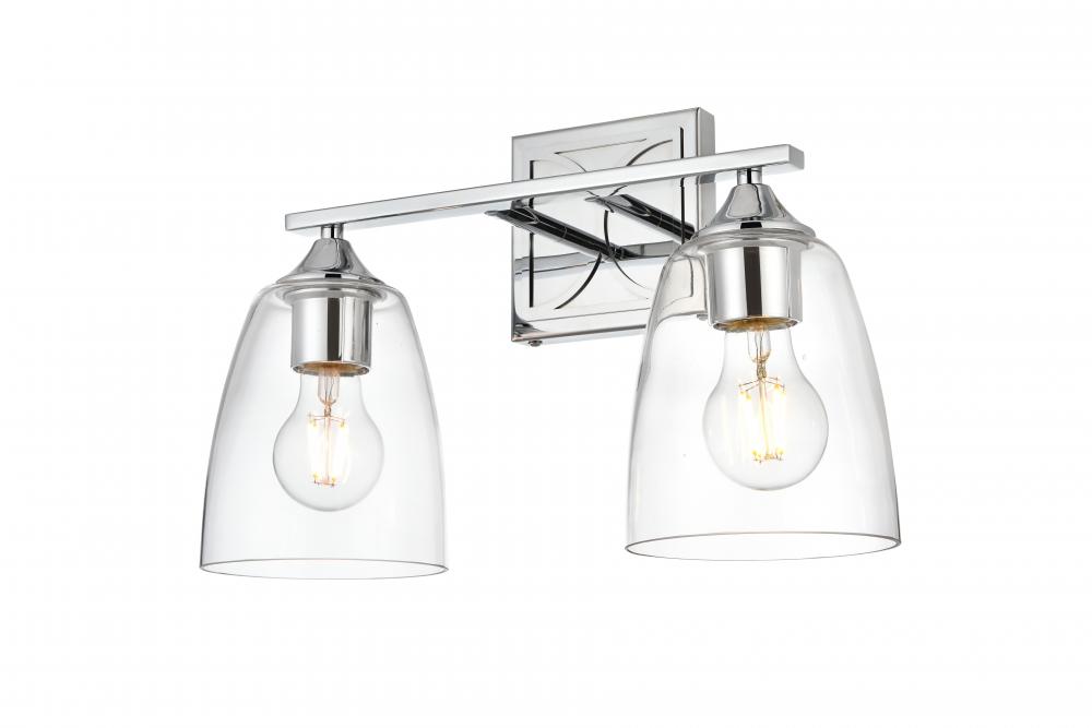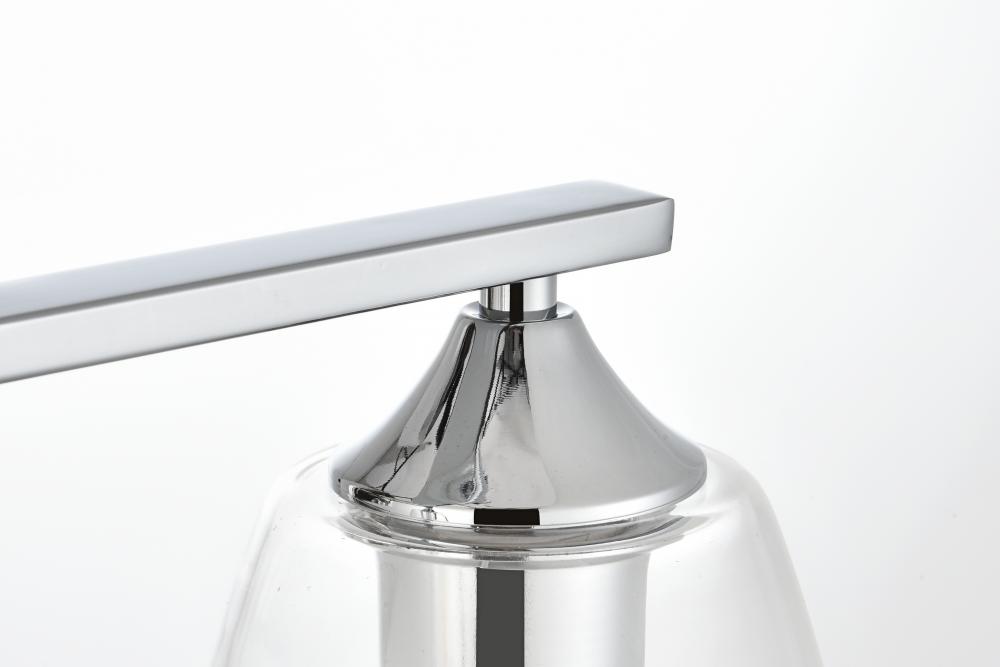 Defined by a sleek metal arm extends to suspend the clear tapered glass shade. A contemporary stunner, it shows off the straight line details from the backplate and the streamline thin metal arm. Compatible with dimmers, so you'll have the right amount of light in any given time of the day. Completely versatile, you can place this wall light as an uplight or downlight. Rated for use in damp locations, this will work perfectly over a vanity in your bathroom.