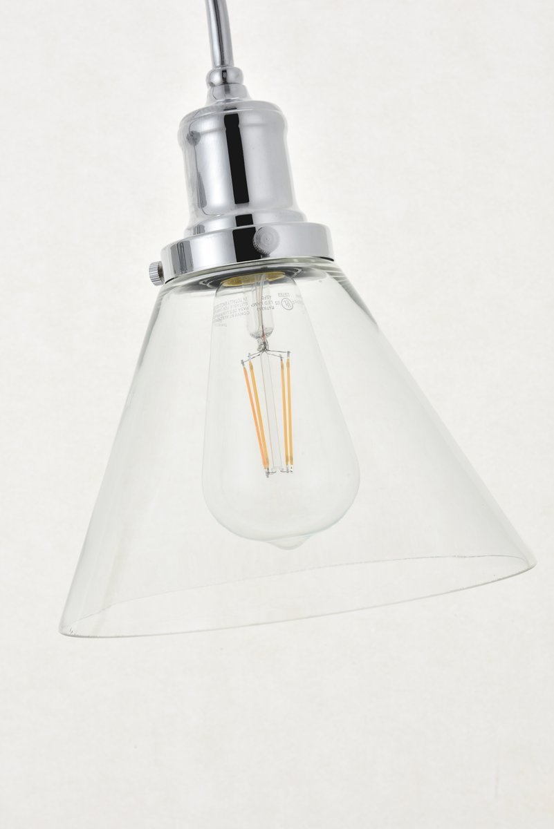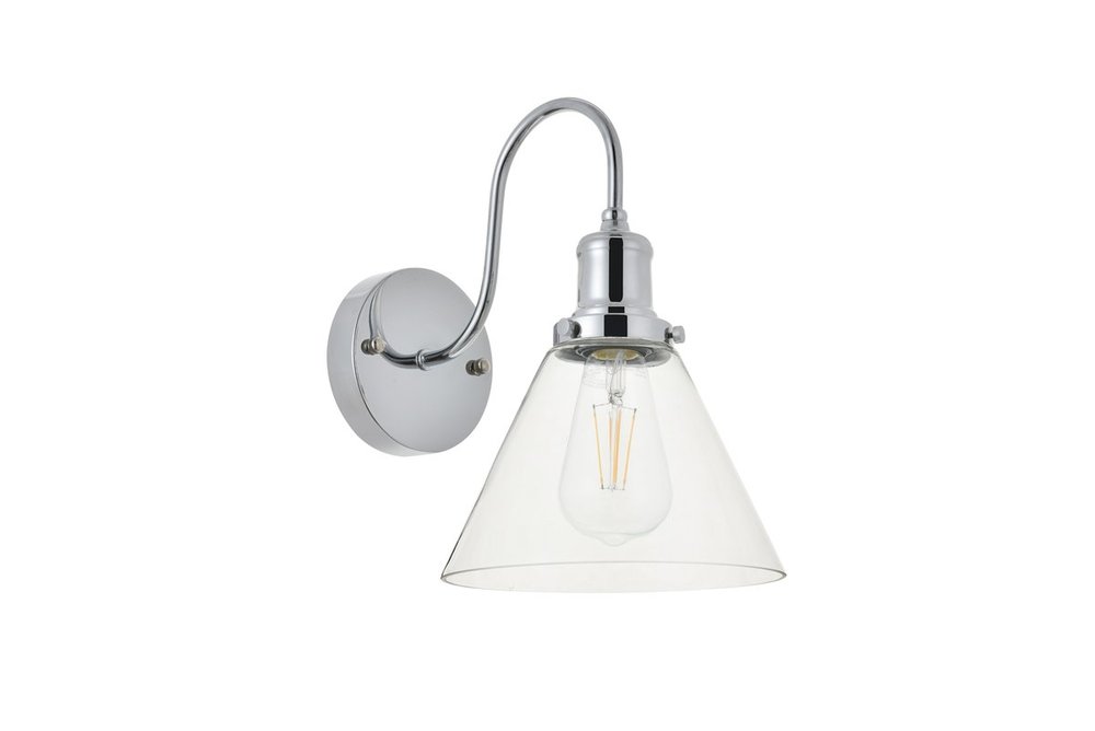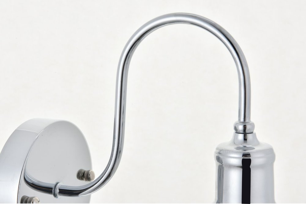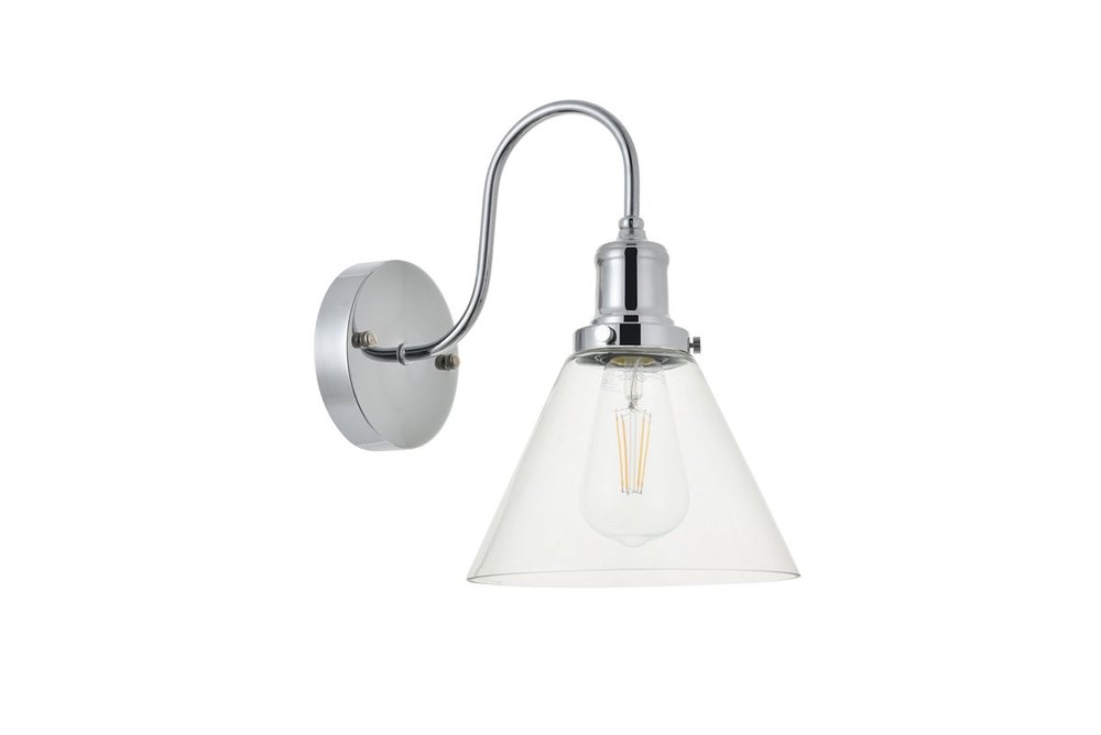 Take a step back through time with the Histoire wall lamp in a chrome finish. The ever delightful undulating arm supports the clear glass cone shade while light illuminates the surrounding area, creating a beautiful display of charm. A perfect wall lamp to act as your guide in your foyer or living room, or even to light up your bathroom walls, you will always enjoy its captivating light.