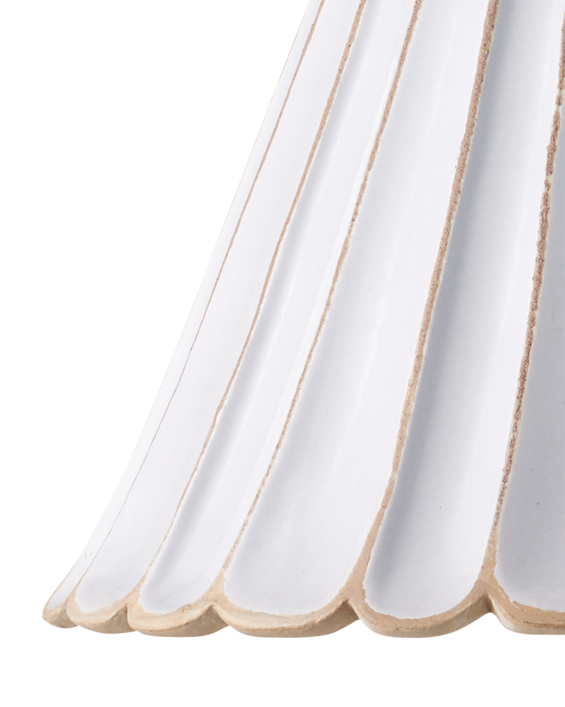 Gently flaring outward, the Jazz Pendant has a fluted silhouette that culminates at the bottom in scallops to dress up the retro-inspired fixture. A snowy white crackle finish covers the hand-thrown terracotta shade to give the pendant a simple modern look. This is one of our offerings that is perfect for clustering or hanging in rows for an even jazzier flair.