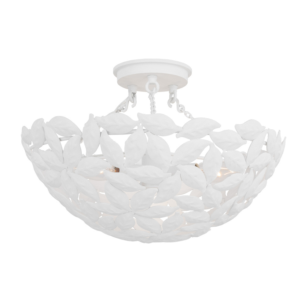 Drawing inspiration from a classic bowl pendant and nature. The Kelan three light semi flush by Alexa Hampton features a leaf motif, detailed by hand in a stunning display that captivates the design. Kelan is a soft, feminine contemporary piece that is beautiful in any space. Available sizes include a small, medium and large lantern.