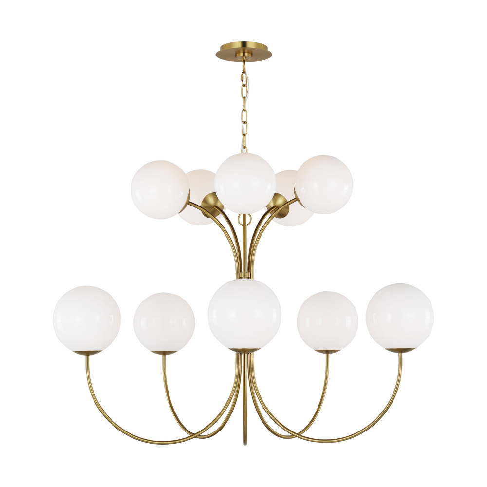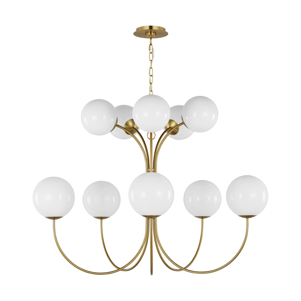 The Noemie ten light multi-tier chandelier by kate spade new york perfectly balances a glass globe and curving teardrop frame, giving it a contemporary look. The clear and white glass casts globes a soft, welcoming glow over a space. This series of dots form this modern chandelier with playfully curved arms. Add an unexpected pop to your entry, living, kitchen or dining room