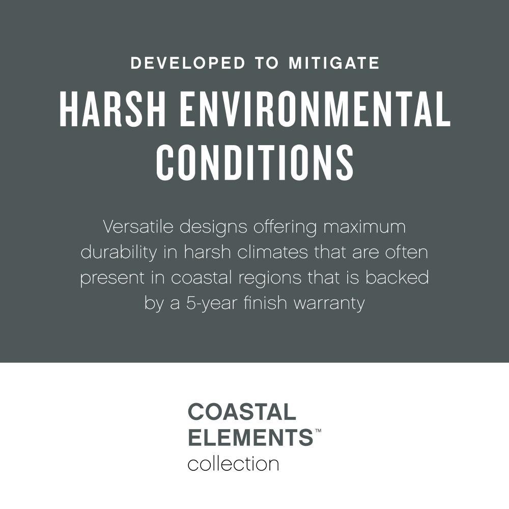 The Alex LED outdoor lantern strikes a modern stance with all the right angles. A contemporary statement-maker, its industrial-inspired thick Coastal Elements frame made of composite material and anti-fade finish guarantees resilience with a 3-year warranty. Designed for ultra-durability, this downlight fixture comes with an LED bulb and is available in versatile Antique Brushed Aluminum or Black finish options. Alex is equally happy indoors, turning heads as an interior wall sconce.