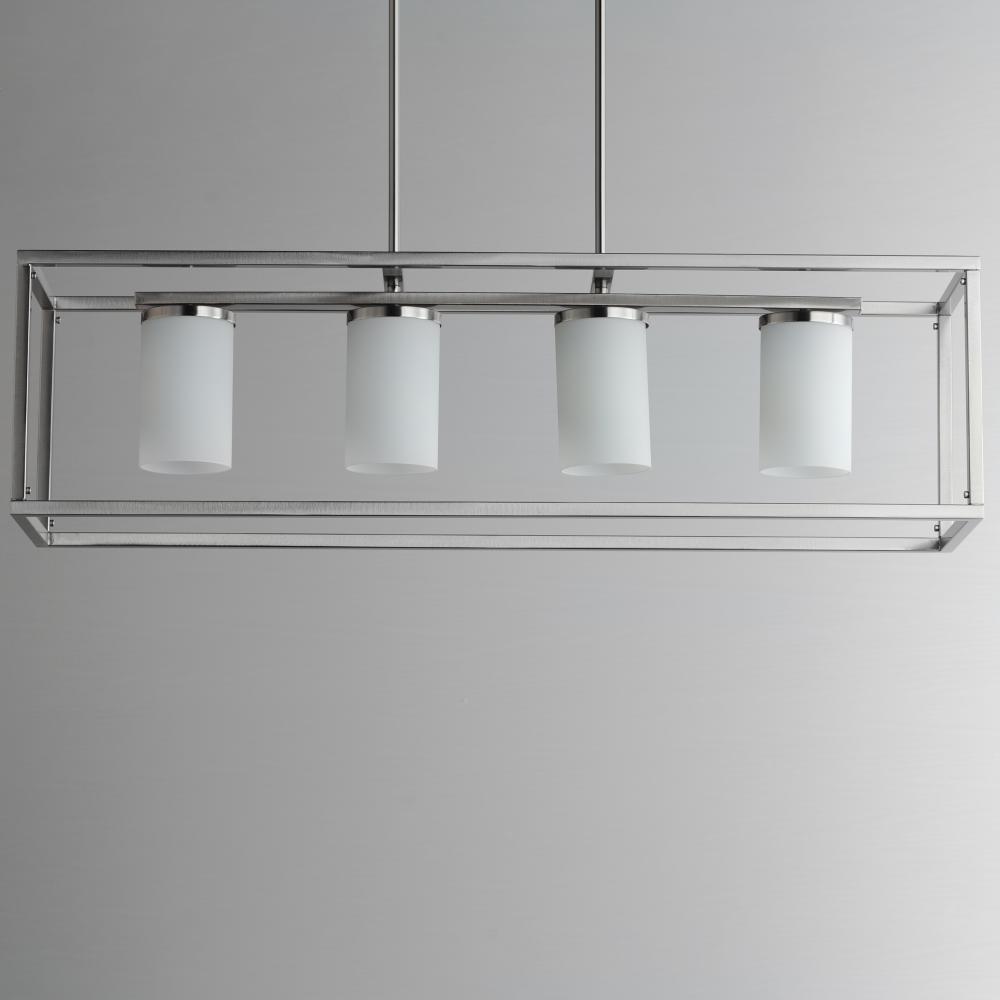 A clean design for the most common applications, the Lateral collection offers chandeliers in both traditional configurations and within a rectangular frame for above dining spaces. Finished in complementary colors including Satin Brass, Satin Nickel or Ma