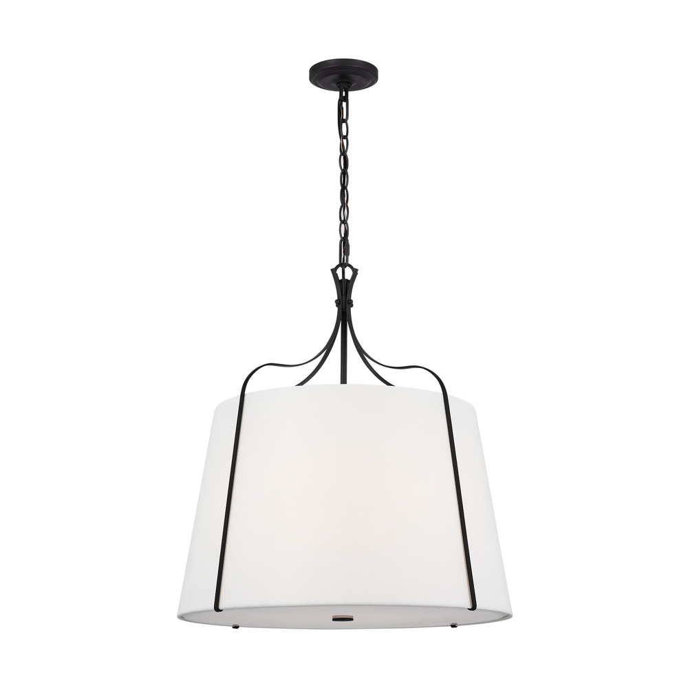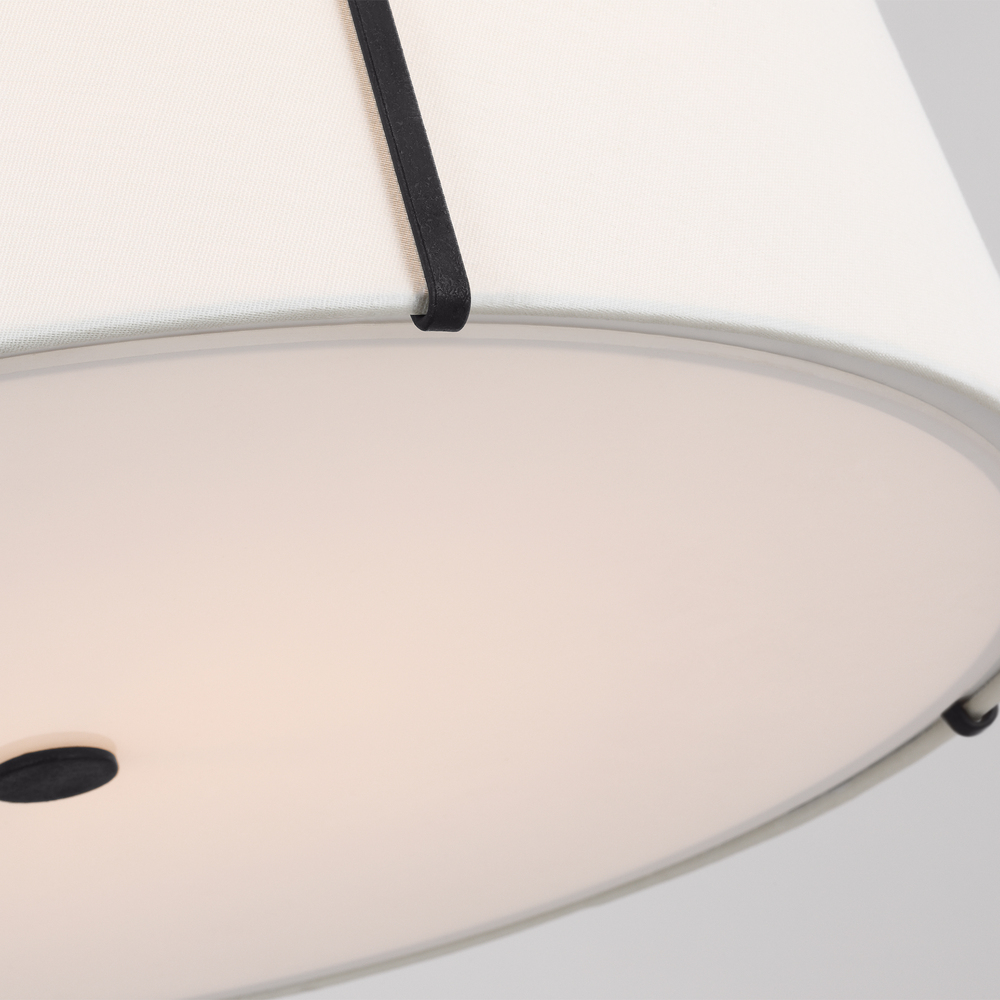 The Leander Pendant by Alexa Hampton makes an immediate impression in any space with its structural iron fixture ensconced in a linen barrel shade. Leander offers a modern twist on a classic lantern design Beautifully structured frame that maintains an open, airy feel