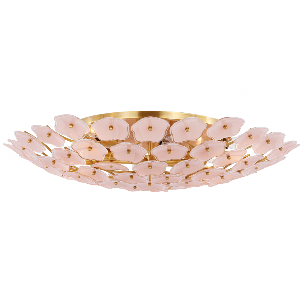 Leighton Grande Flush Mount in Soft Brass with Blush Tinted Glass