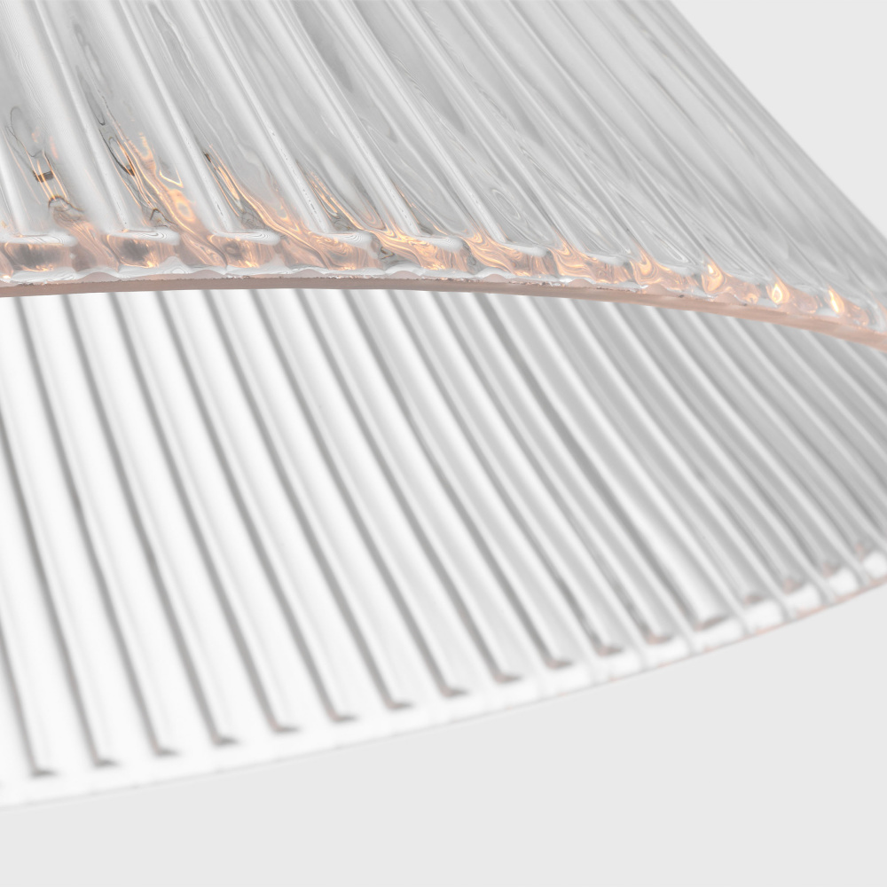 Features a ribbed glass texture complemented by a metal band for added depth and visual interest.
