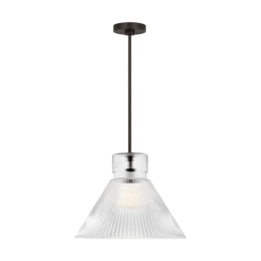 Crafted with Steel in a Midnight Black finish with clear ribbed glass shade