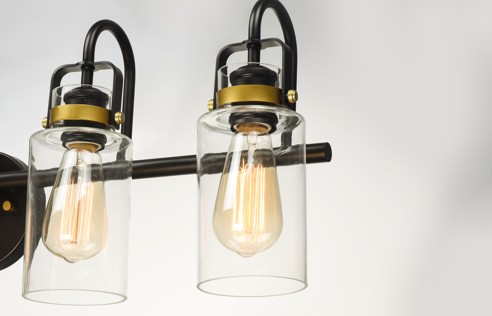 Modern farmhouse design requires vintage looks with an updated style. This collection fits this definition with minimalistic styled frames of Bronze with Gold accents that cradle Clear mason jar shaped glass. Add vintage bulbs for farmhouse appeal or tubul