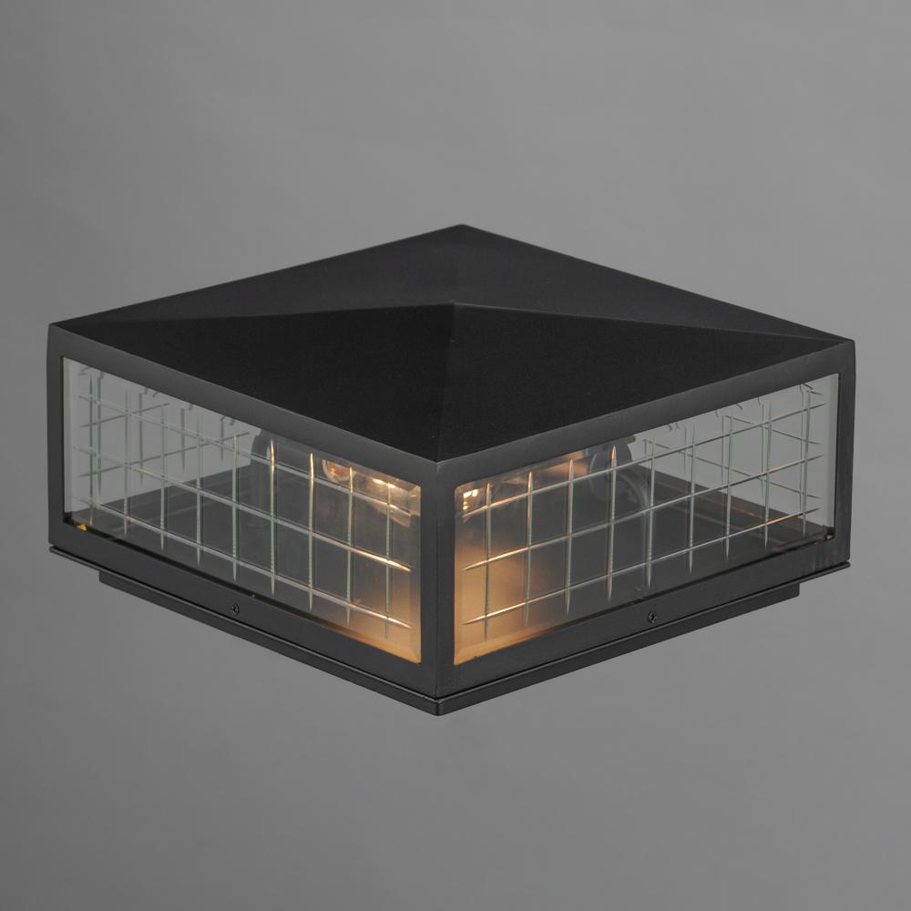 A simple square-framed lantern features deep etched squares on Clear glass, creating a captivating array of refracted light. Constructed from die-cast aluminum and finished in Matte Black, the design blends classic elements with a refreshing, modern approa