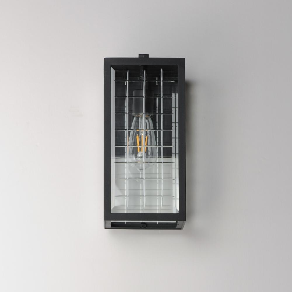 A simple square-framed lantern features deep etched squares on Clear glass, creating a captivating array of refracted light. Constructed from die-cast aluminum and finished in Matte Black, the design blends classic elements with a refreshing, modern approa
