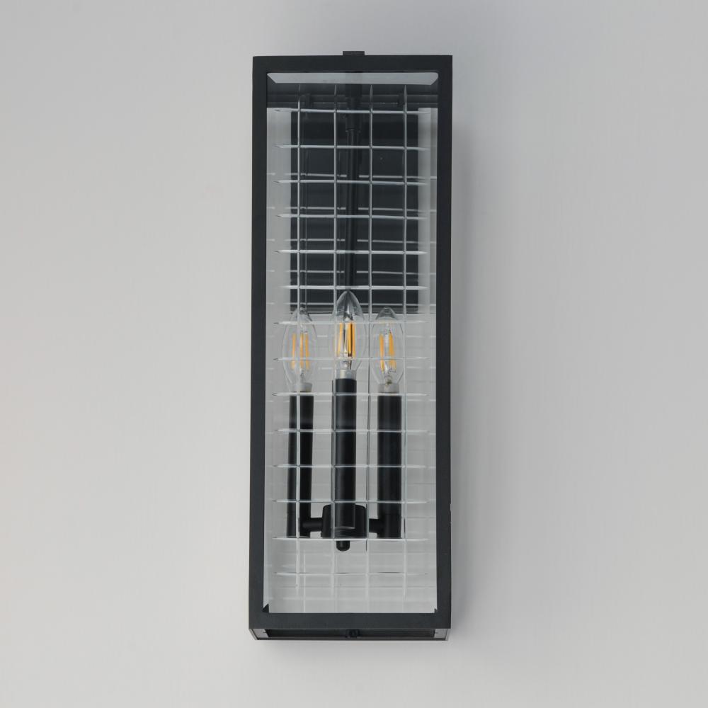 A simple square-framed lantern features deep etched squares on Clear glass, creating a captivating array of refracted light. Constructed from die-cast aluminum and finished in Matte Black, the design blends classic elements with a refreshing, modern approa