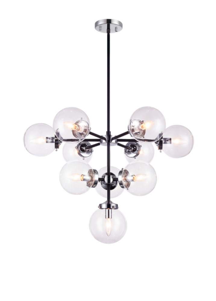 A Mid-Century style that will work with many décors. The series comes in two finishes, Aged Gold Brass and Chrome with Matte Black accents. The finished look can be completely different whether you choose opal or clear glass. The fixtures include a 2-inch rod that you can convert to semi-flush pieces instead of a chandelier. This series can brighten any room with its timeless style and versatile design.