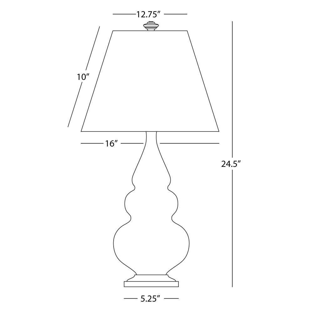 Our Triple Gourd collection features a simple but gracefully curving silhouette. Available in a wide array of vibrant colors and several different base finishes. - Celadon Glazed Ceramic with Antique Natural Brass Finished Accents Small Triple Gourd Accent Lamp with Pearl Dupioni Fabric Shade