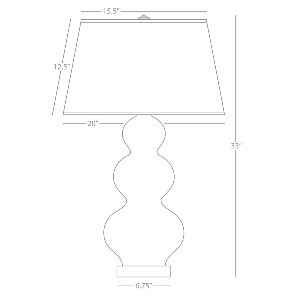 Our Triple Gourd collection features a simple but gracefully curving silhouette. Available in a wide array of vibrant colors and several different base finishes. - Midnight Blue Glazed Ceramic with Lucite Base Triple Gourd Table Lamp with Pearl Dupioni Fabric Shade