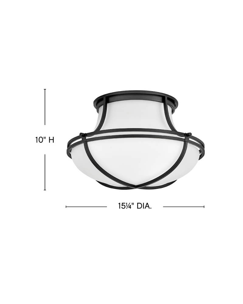 Saddler’s sculptural tear-drop dome forms a chic silhouette accentuated by decorative metal straps. Etched opal glass complemented by a Heritage Brass or Black finish creates a versatile design with high style.