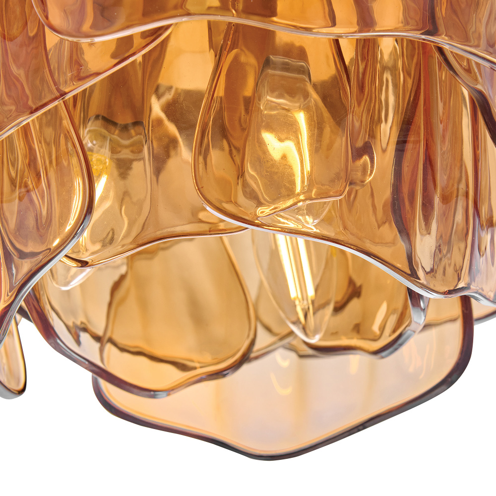 Fantine’s flowing blooms are inspired by preserved flowers suspended in time. Uniquely shaped artisan-sculpted glass arranged in lush layers creates an ethereal dance of light and shadow. An exaggerated canopy and slender stems are crafted from solid brass in a hand-touched Unlacquered Brass finish.