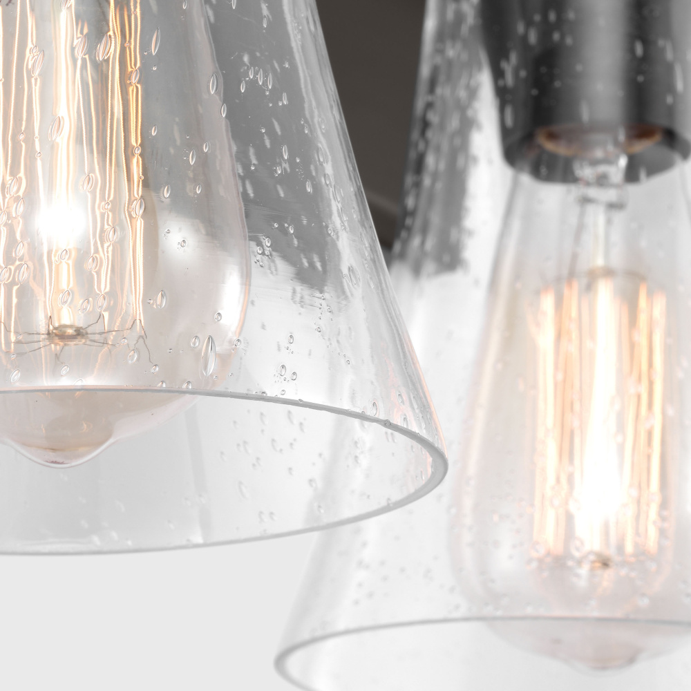 This fixture features mouth-blown glass and slight variations are an inherent part of the handcrafting process.
