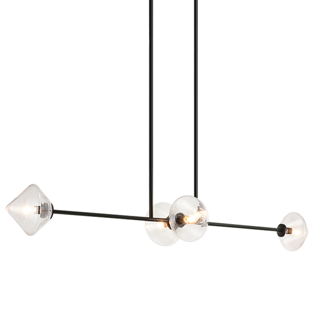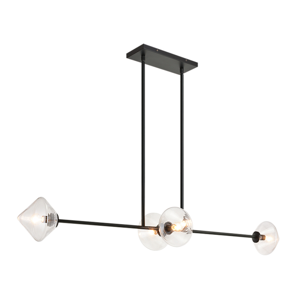 Novo is modern yet classic – available in the form of chandelier, wall sconce, and flush mount. The rods and base are either Aged Gold Brass or Black finish paired with a contrasting Opal or Clear round glass and diamond shaped glass. The style is very versatile and will add beauty to multiple rooms.