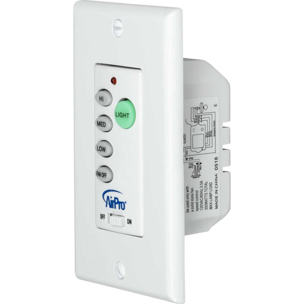 Includes Wall mount transmitter;4 – Dip Switches (16 code options);3 speed fan control;Full range light dimmer;Will work with LED lamps and modules;Includes canopy receiver and wall cover plate