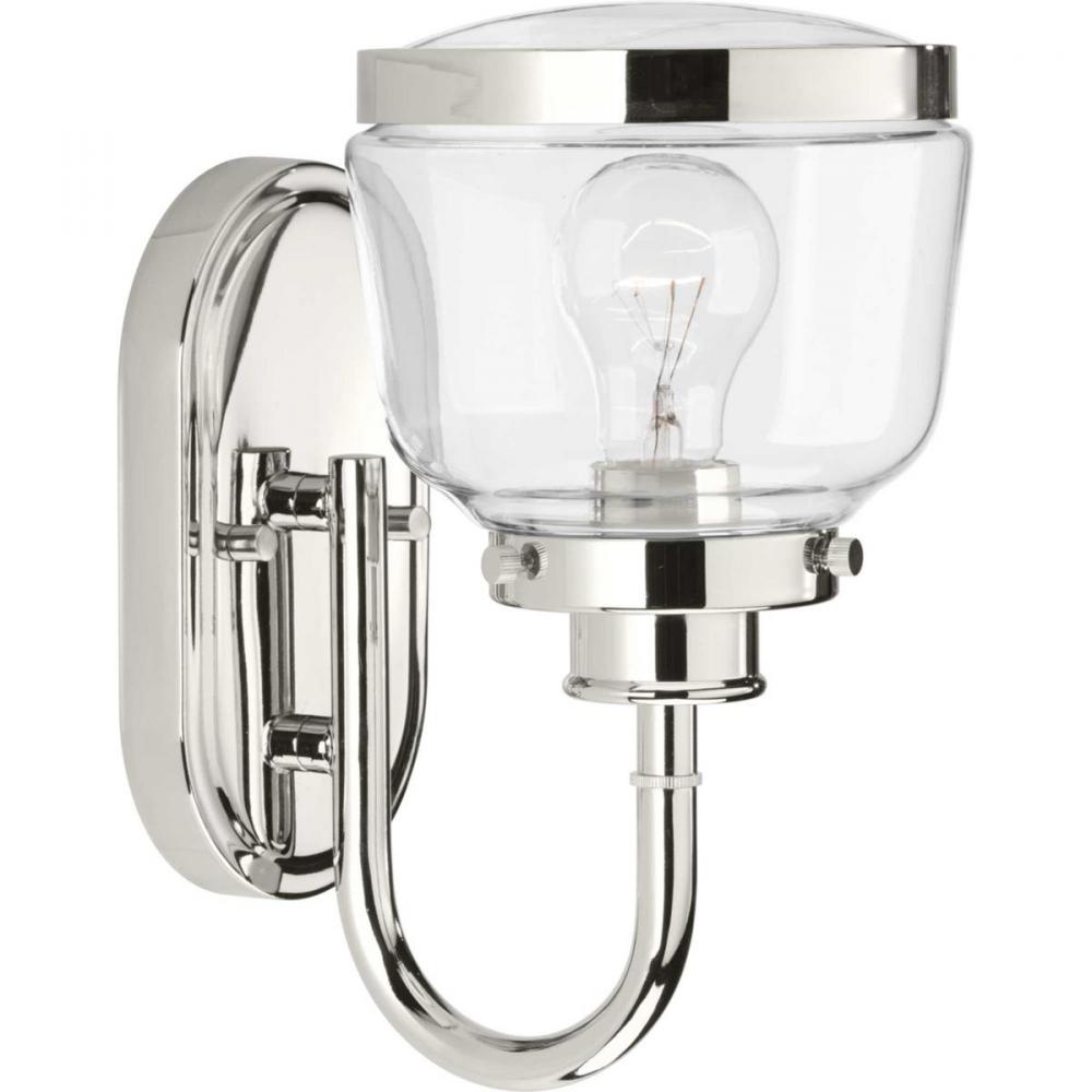 Ideal for a bathroom, dining room, hallway, or foyer;Perfect for farmhouse and vintage electric style settings;Subtle polished nickel finish;Crisp clear glass shade;Mount the light fixture facing up or down;Use 1 medium base bulb that is sold separately (7