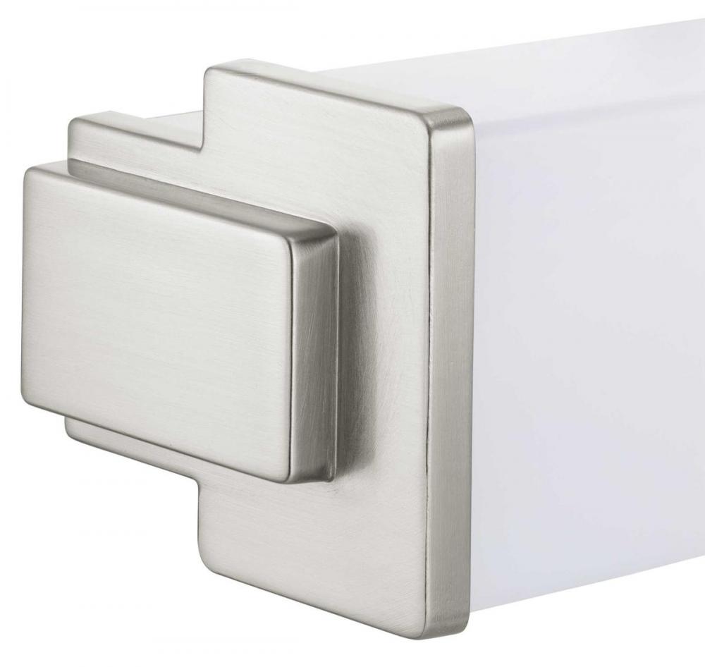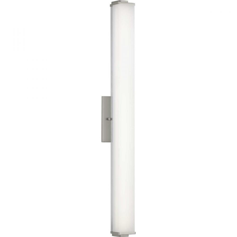 Ideal for a bathroom;Perfect for modern style settings;Beautiful brushed nickel finish;Crisp white acrylic shade;Fixture can mount horizontal and vertical;Includes 1 integrated LED (34 W), 2450 lumens, 3000 K, 90 CRI, dimmable;Measures 36-inch width by 4.