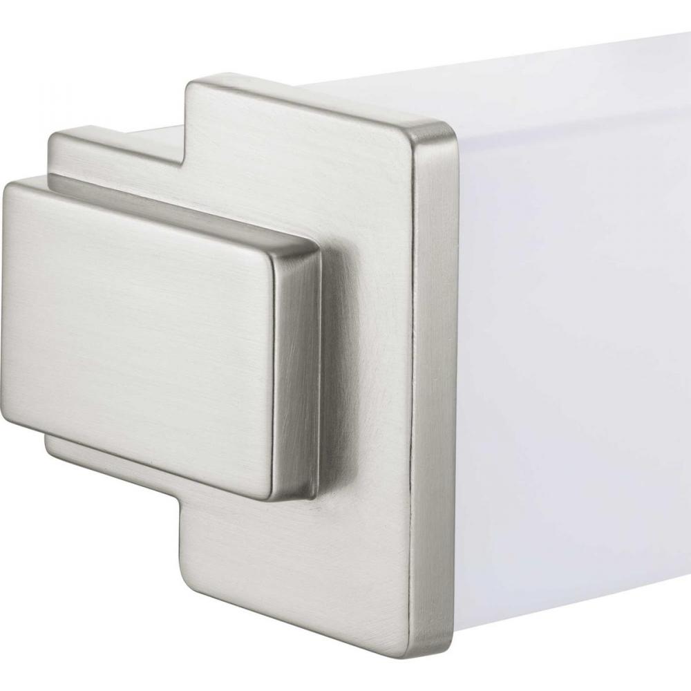 Phase 2.2 features a thin, acrylic shade framed by architectural accents in Brushed Nickel complete the design. This specially designed 24in. linear bath fixture delivers ambient light to surfaces free of shadows. Ideal for residential, commercial and multi-family applications. An integrated LED source provides energy and cost savings benefits. Can be installed vertically or horizontally.
