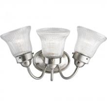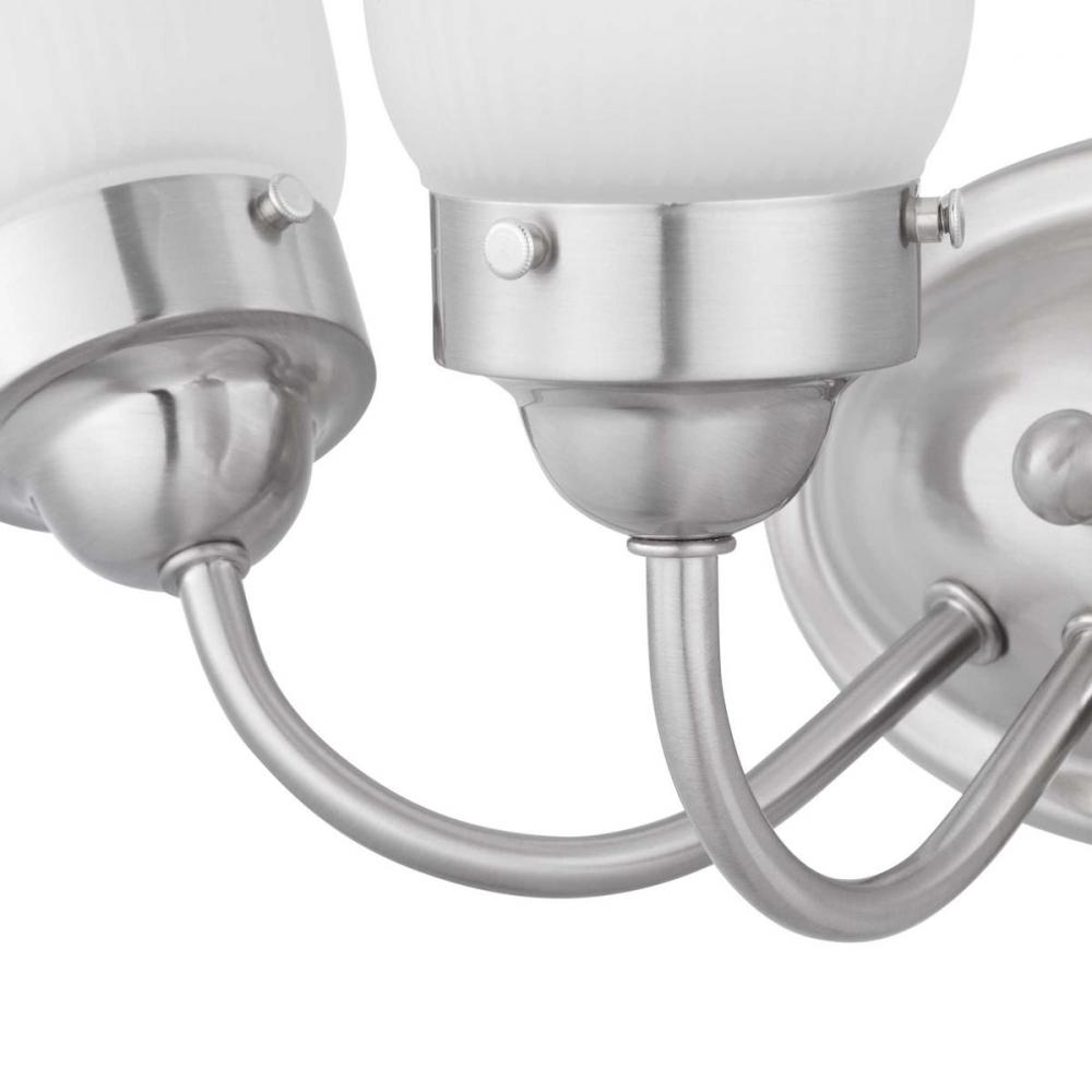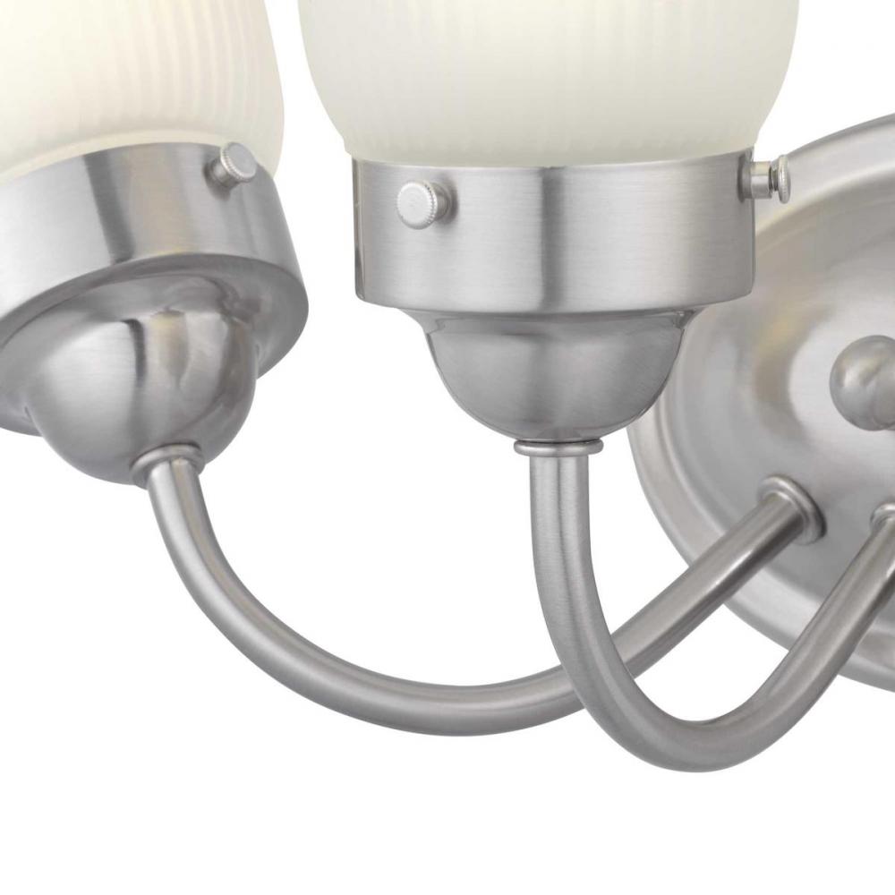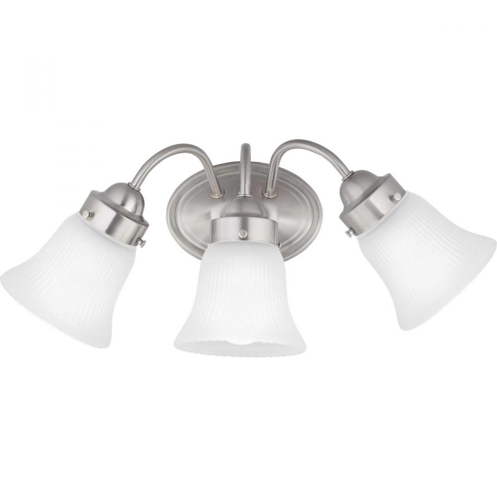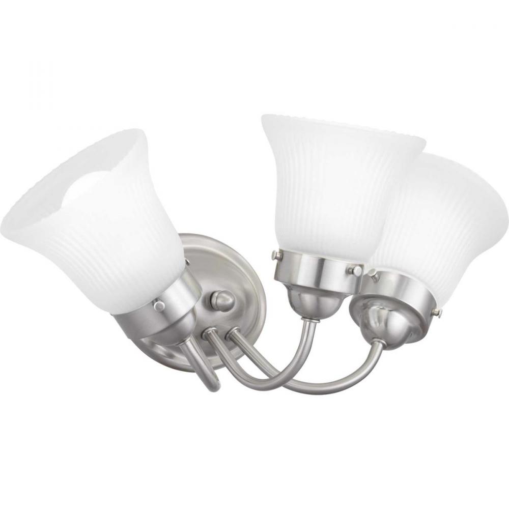 Ideal for a bathroom;Perfect for traditional style settings;Beautiful brushed nickel finish;Elegant etched fluted glass shades;Mount the light fixture facing up or down;Use 3 medium base bulbs that are sold separately (100 W max - LED/CFL/incandescent);com