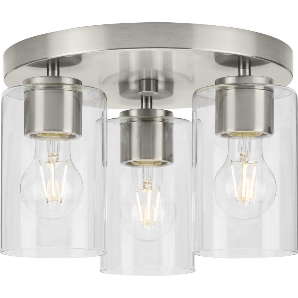 The Cofield Flush Mount features a slender, clean design that showcases understated elegance. A simple round canopy suspends cylindrical glass shades, providing contemporary style to mid-century modern and transitional settings, delivering ambient illumination to hallways, foyers, bedrooms and laundry rooms.