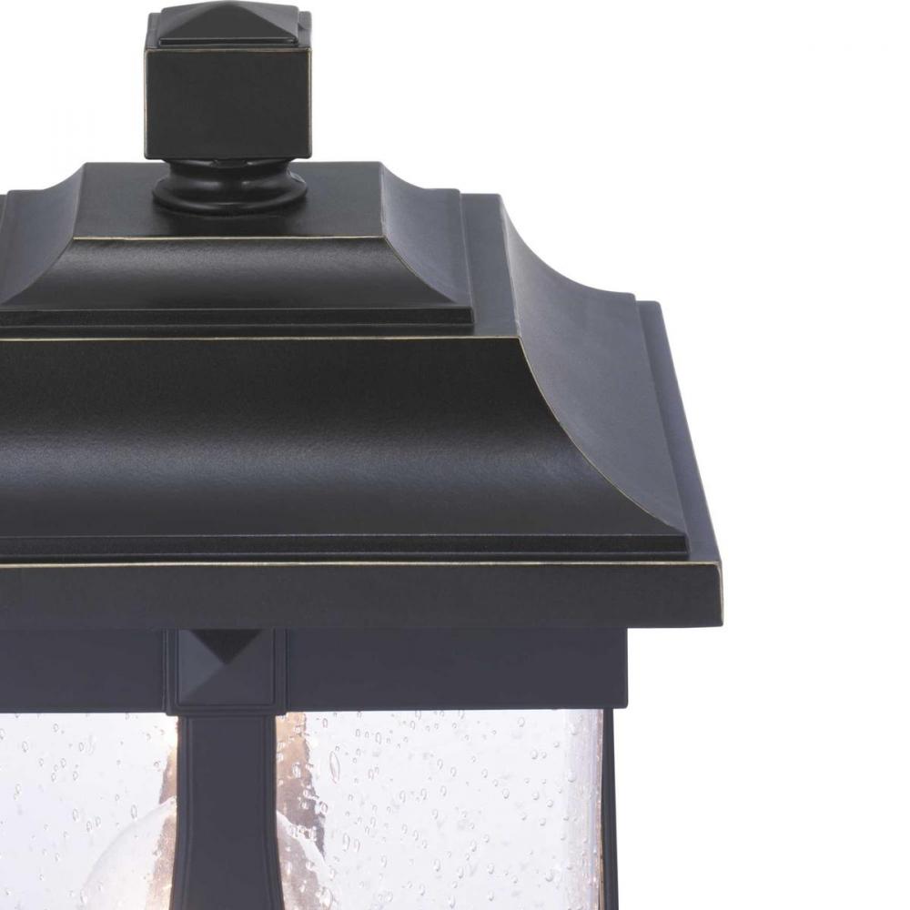 Distinctive forms with ancient roots are featured in this post lantern from the Abbott Collection. Transparency, depth and dimension are all on display to highlight the clear seeded glass and sweeping details within the Antique Bronze frame.