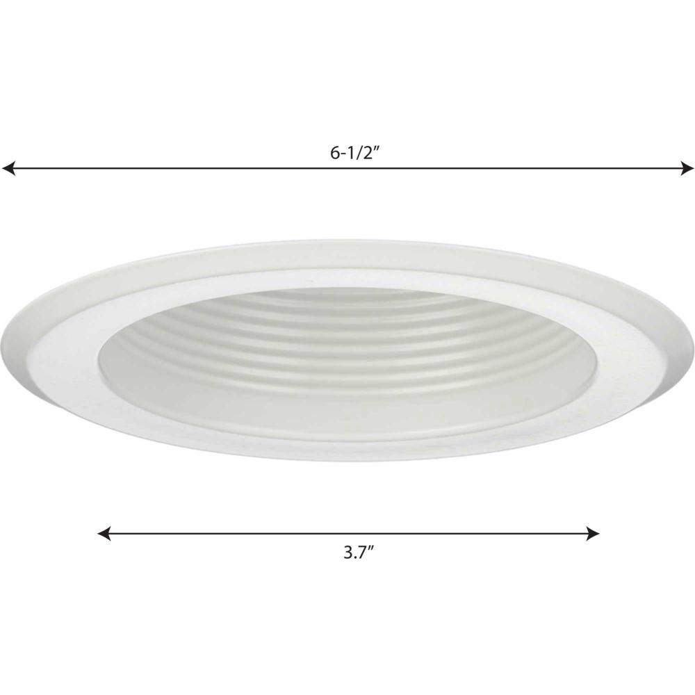 5" Recessed shallow step baffle;Satin White finish;Uses a PAR30/R30 bulb, 50 watt max.;Trim is only compatible with P1841-ICAT and P851-ICAT;Positive upward spring action forces trim to fit snugly against the ceiling;Socket mounts to trim for optimum p