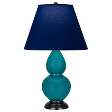 Peacock Glazed Ceramic Small Double Gourd Accent Lamp with Pearl Dupioni Fabric Shade - Our Double Gourd collection features a simple but gracefully curving silhouette. Available in a wide array of vibrant colors and several different base finishes.