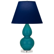 Peacock Glazed Ceramic with Lucite Base Small Double Gourd Accent Lamp with Lavender Fabric Shade with Plum Lining - Our Double Gourd collection features a simple but gracefully curving silhouette. Available in a wide array of vibrant colors and several different base finishes.