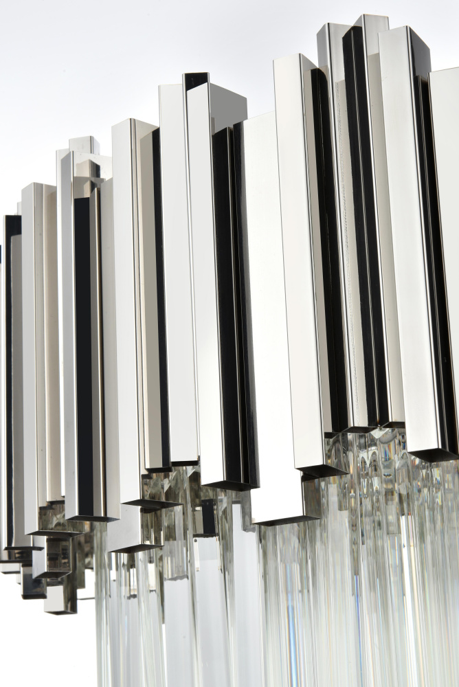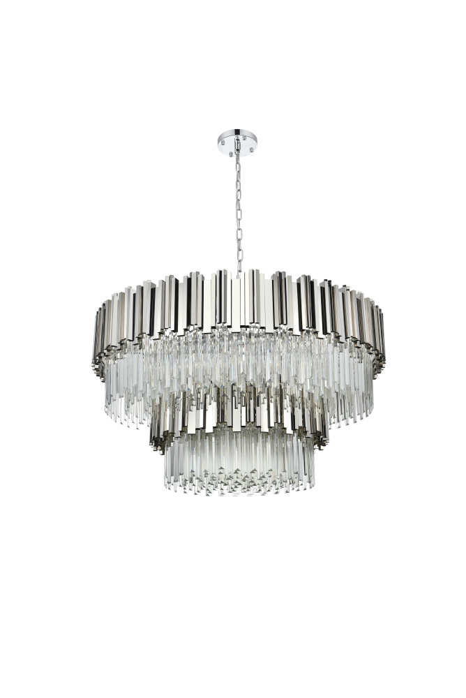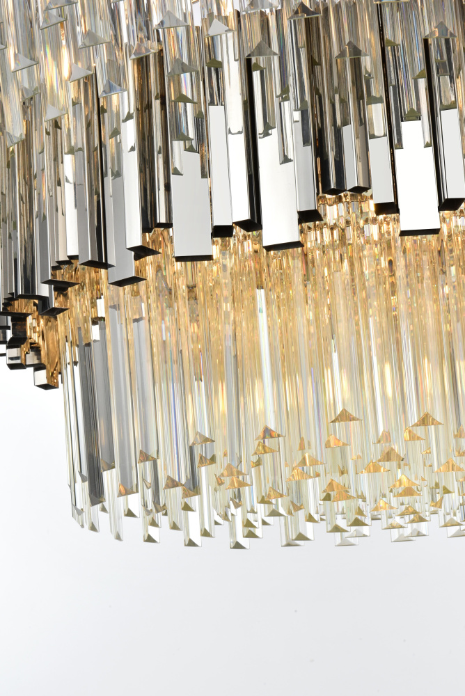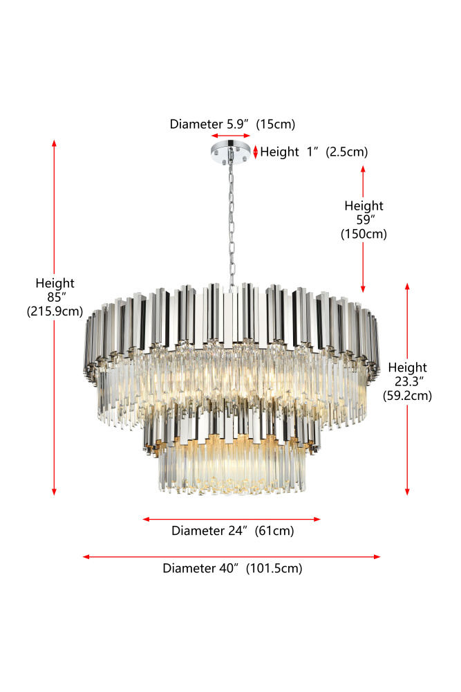 Transform your space with this stunning chandelier, a dynamic fusion of iron and staggered clear glass that exudes contemporary style and architectural artistry. The layered glass refracts light beautifully, creating a radiant display of glowing brilliance that fills the room with warmth and sophistication. The staggered arrangement of the metal and glass adds depth and dimension, making this chandelier an eye-catching centerpiece. Fully dimmable, it allows you to adjust the ambiance to suit any mood, from bright and vibrant to soft and inviting. Available in satin gold for a warm, luxurious vibe, chrome for sleek modernity, and black for bold, dramatic contrast, this fixture comes in various sizes to perfectly complement any space. Complete with a matching canopy, it’s an ideal choice for dining rooms, living rooms, or offices. Add a touch of refined geometry to your décor and bask in the brilliance of this radiant desi