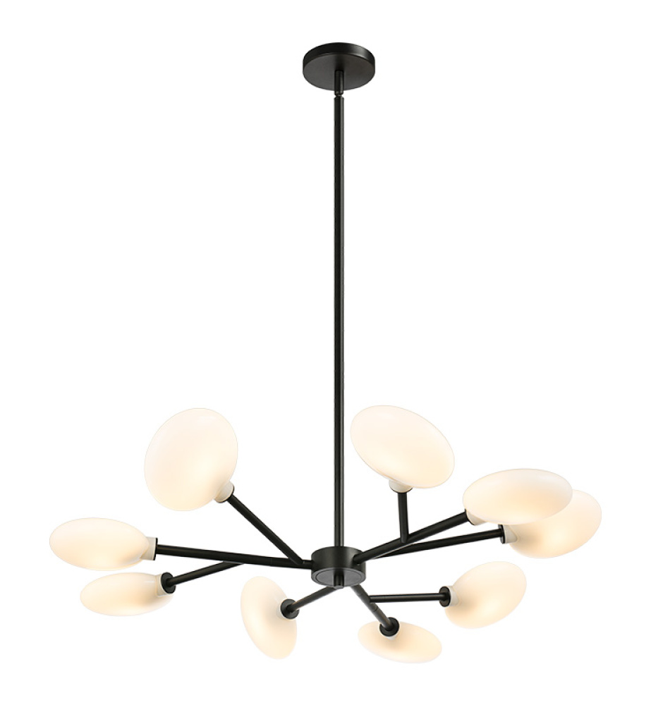 Peony A modern masterpiece with timeless warmth, this chandelier introduces contemporary sophistication through its radiant, pebble-shaped opal glass shades arranged in a striking starburst formation. The larger glass elements echo the sculptural beauty of our Hydrangea series. Each opal diffuser casts a soft, inviting glow, balancing ambience with artistic presence. Available in Champagne Gold or Matte Black finishes. LIGHTBULBS NOT INCLUDED