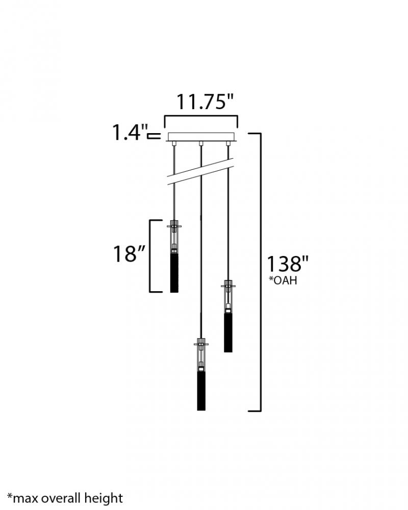 Slender Clear glass tubes sheath a Polished Chrome rod that supports small LED lamps. The glass is etched at a dividing line in the glass to softly diffuse the light. Available in two lengths of glass tube, the pendants are also available in multiple confi