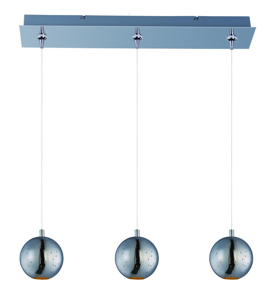 Perforated metal balls of Polished Chrome sparkle like stars in the night. Several styles feature different size shades, which can be configured in a variety of designs. The LED modules not only shine like stars, but also provide good down lighting.