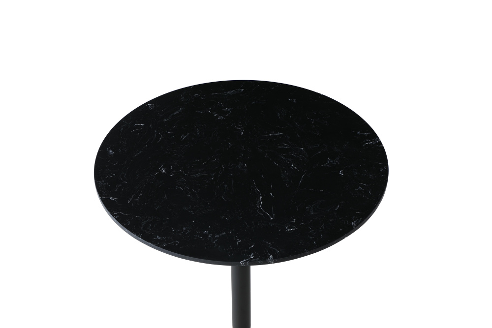 Round tabletop crafted from engineered marble with subtle marbling for a modern, refined look.