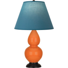 Pumpkin Glazed Ceramic with Deep Patina Bronze Finished Accents Small Double Gourd Accent Lamp with Pearl Dupioni Fabric Shade - Our Double Gourd collection features a simple but gracefully curving silhouette. Available in a wide array of vibrant colors and several different base finishes.