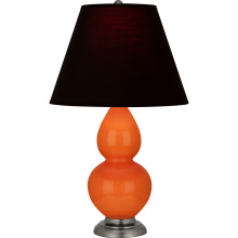 Pumpkin Glazed Ceramic with Antique Silver Finished Accents Small Double Gourd Accent Lamp with Pearl Dupioni Fabric Shade - Our Double Gourd collection features a simple but gracefully curving silhouette. Available in a wide array of vibrant colors and several different base finishes.