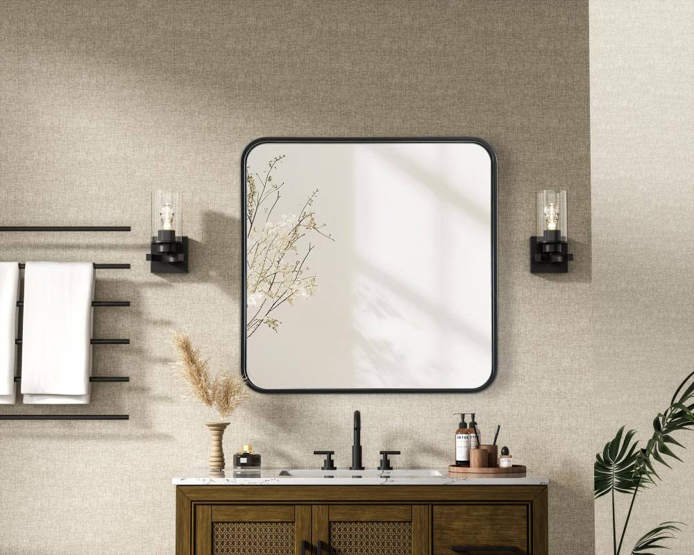 R Corner Square Mirror 24"x24"x2" black